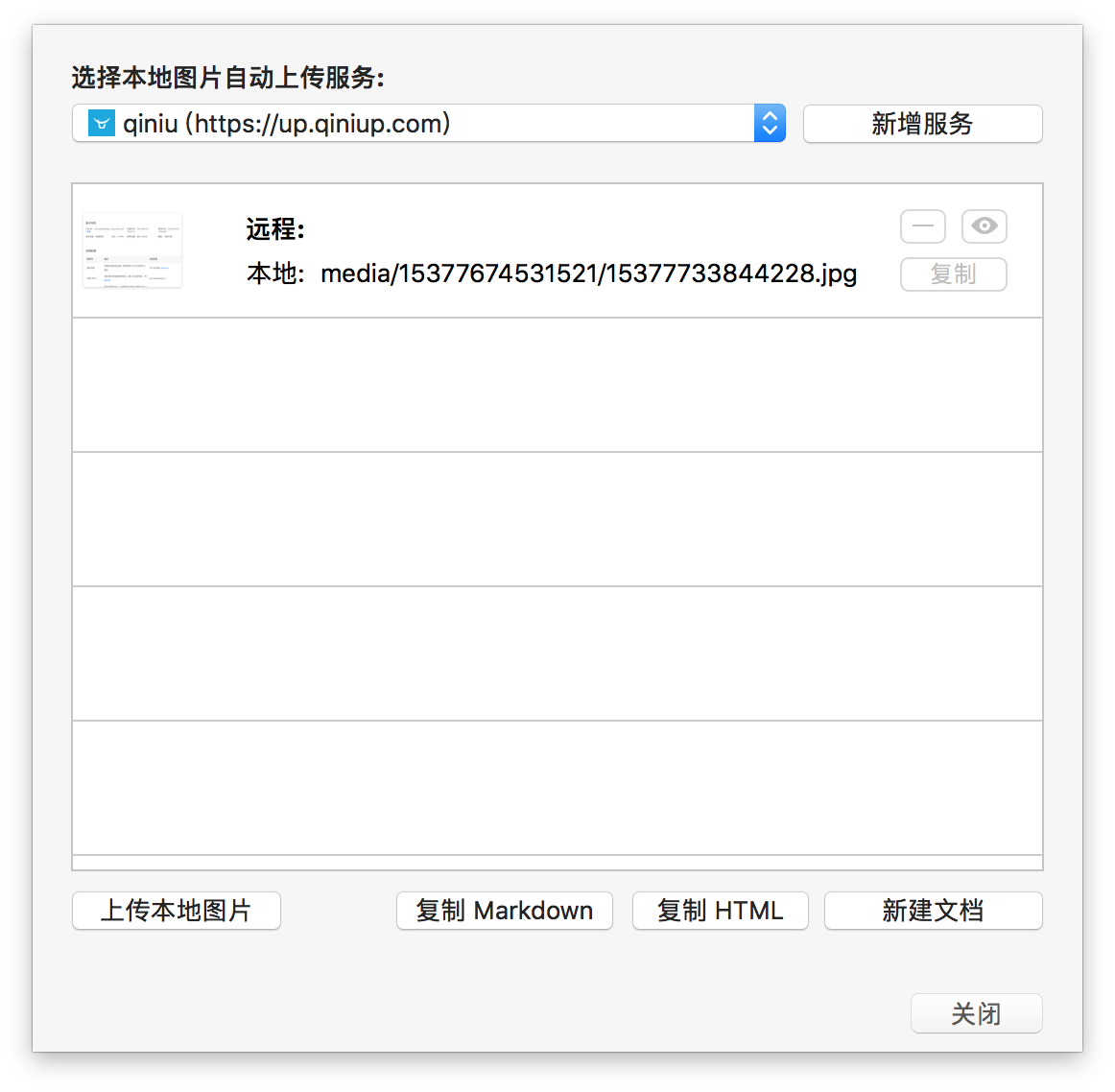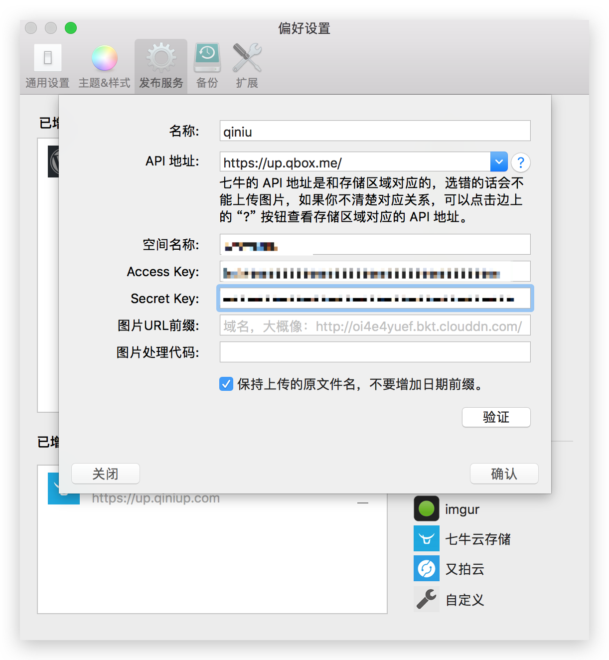 然后,我们回到MWeb,偏好设置->发布服务,选择七牛云存储