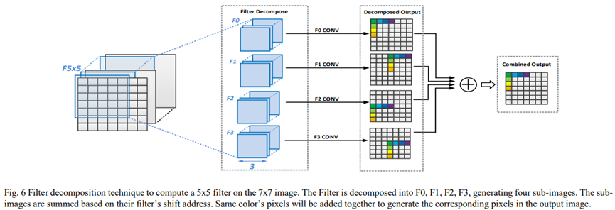 1.通过仅使用3×3大小的计算单元,使用滤波器分解技术支持大型内核大小的滤波器的计算。