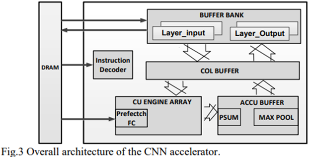 通常,这是通过本地GPU或DSP完成的。导致有限的计算能力和相对较大的功耗,使得不适合在功率有限的物联网设备上运行计算密集型神经网络,如CNN。在物联网设备内设计一个专用的CNN加速器至关重要,该加速器能够以最小的功耗支持高性能人工智能计算。在神经网络加速方面,一些已报告的工作专注于提供一种计算通用神经网络的体系结构。例如,通过对神经网络进行适当的修剪,提出了一种基于神经网络稀疏性的高效硬件结构。在不考虑参数重用的情况下,计算完全连通的深层神经网络是一种更通用的体系结构。相反,CNN有其独特的功能,即在扫描过程中,过滤器的权重将在整个图像中大量重复使用。得益于这一功能,许多专用CNN硬件加速器被报告。大多数报告的CNN加速器只关注于加速卷积部分,忽略了池函数的实现,这是CNN网络中的一个常见层。
