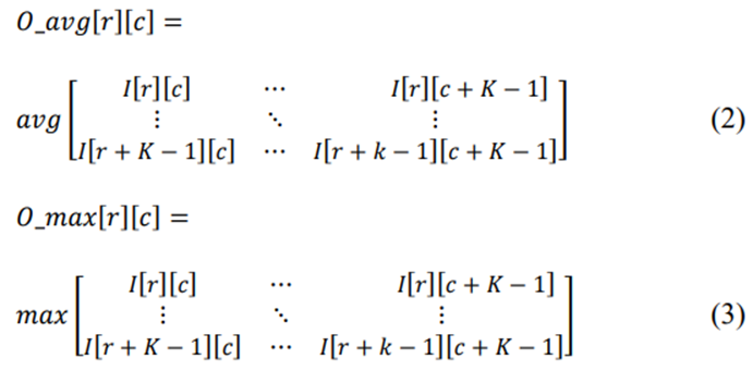 在这里,𝐼[𝑟][𝑐] 表示位置(r,c)处输入通道的数据,池窗口的内核大小为K。