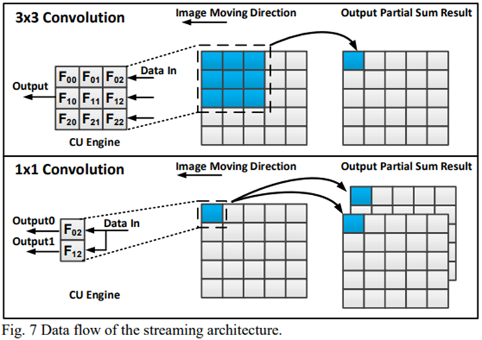 流式架构通过利用CNN卷积中的上述功能,减少数据移动。