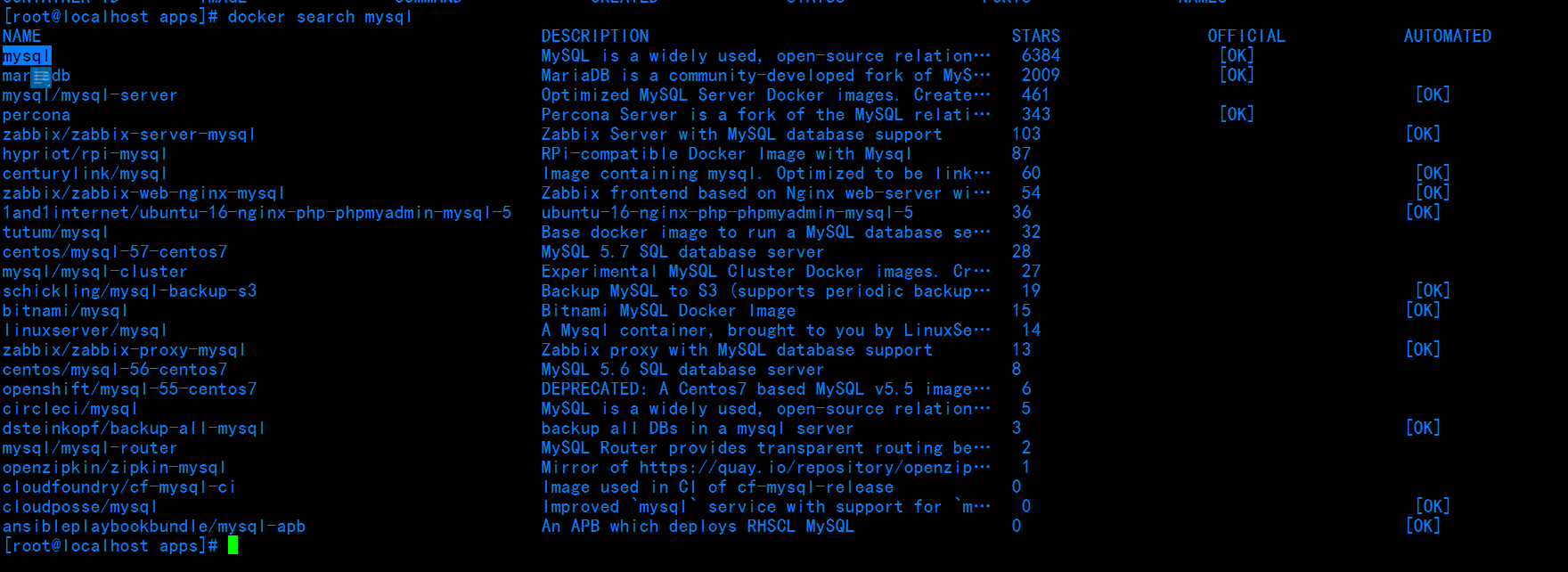 docker search mysql