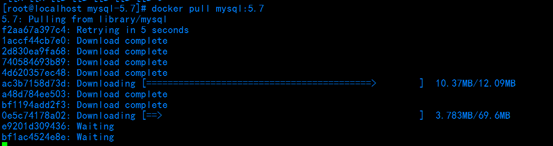 - -d mysql:5.7 : 后面跟的内容就是上面docker pull 拉取时候后面写的内容 ,本文上面的命令是: