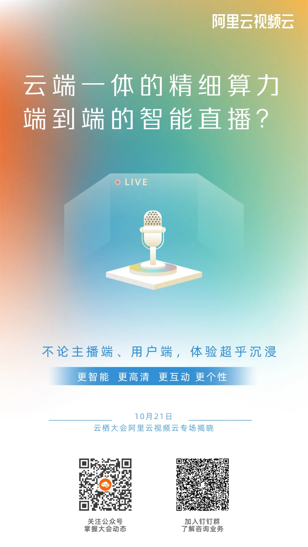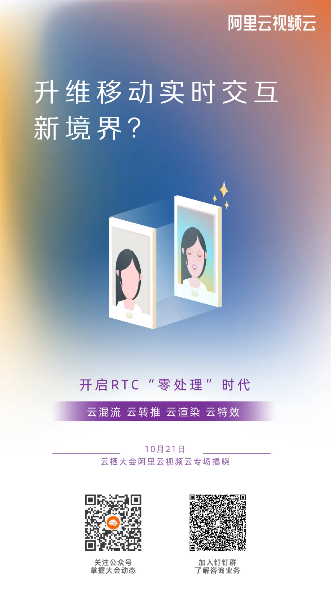 「视频云技术」你最值得关注的音视频技术公众号,每周推送来自阿里云一线的实践技术文章,在这里与音视频领域一流工程师交流切磋。公众号后台回复【技术】可加入阿里云视频云产品技术交流群,和业内大咖一起探讨音视频技术,获取更多行业最新信息。