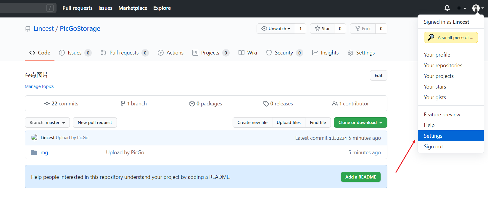 建仓库就不用说了, token主要是给picGo一个操作权限