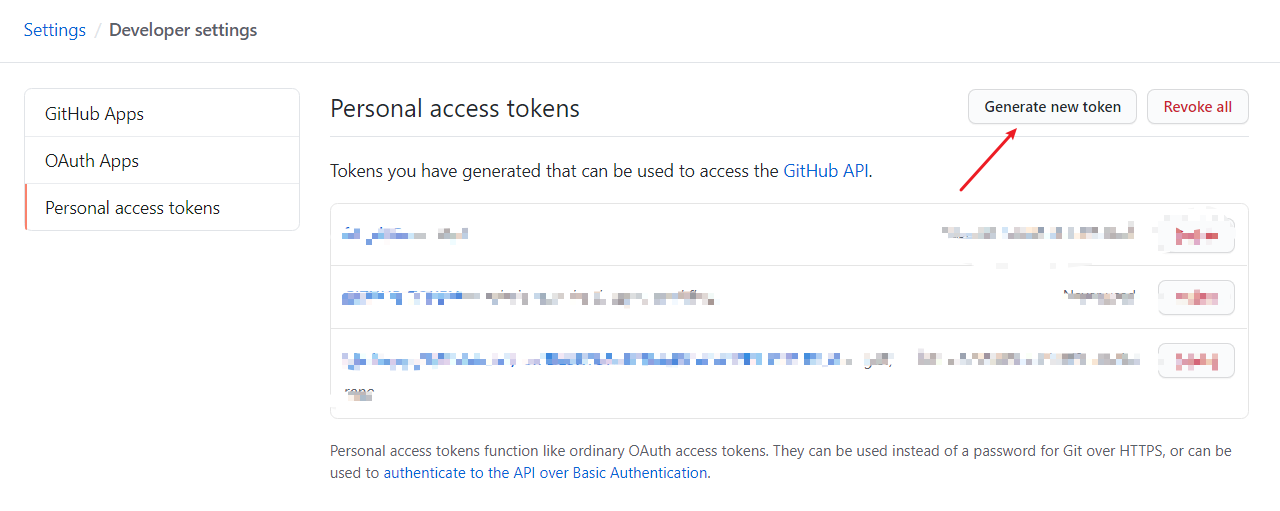 先进入settings, 然后进入developer settings, 建立一个新的token就可以了