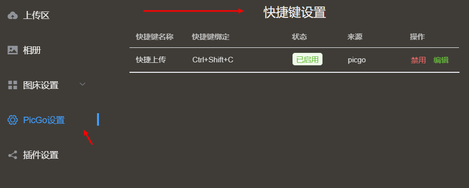 比如我这里设置了ctrl + shift + c上传剪切板图片并获取markdown图片链接, (配合snipaste截图软件使用效果更佳)