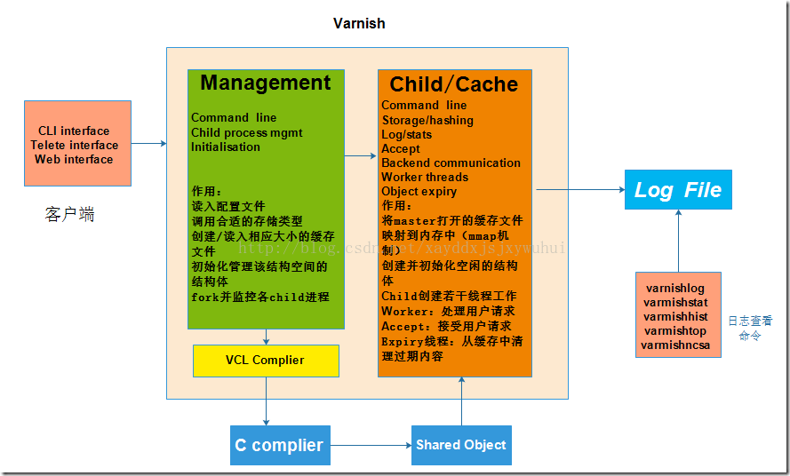 Management进程:对子进程进行管理,同时对VCL配置进行编译,并应用到不同的状态引擎。