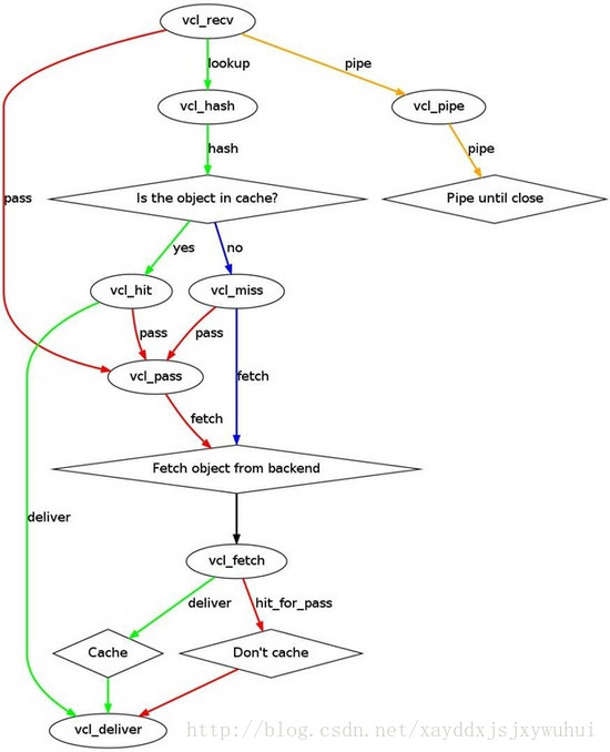 每一个状态引擎处理结束之后,都会将结果return给varnish,由varnish决定下一个状态引擎。由于每个引擎的下一个处理引擎都是特定的,所以return的值基本上也是确定的,可以通过官方文档获取。各引擎的处理流程图如下:
