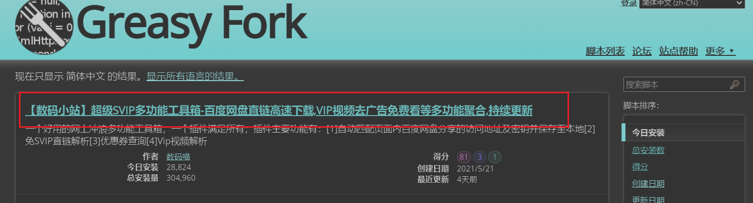 于是我就找呀找呀,找到了一个Greasy Fork ,终于打开了新世界的大门,原来还有这么好用的黑科技啊!╮(╯_╰)╭