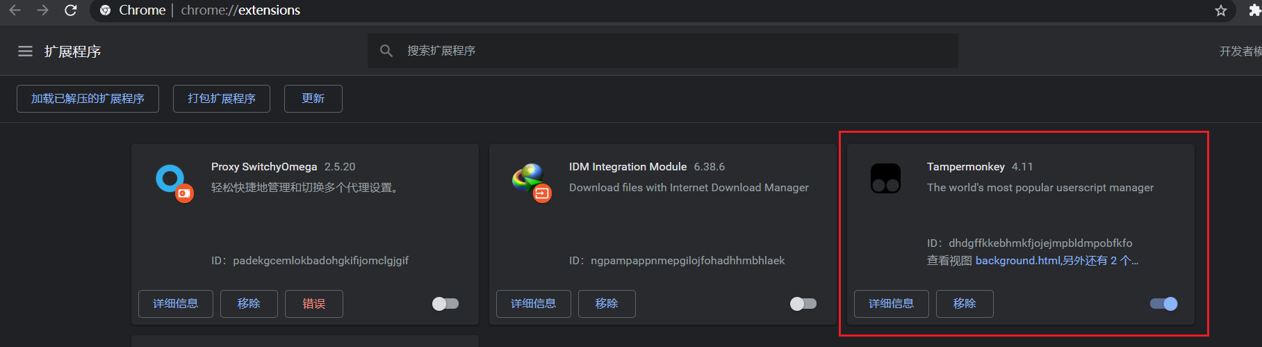 很简单,就是通过脚本增强了你的浏览器功能,比如加速广告,直接看收费视频啥的,都是轻轻松松;而下载的脚本太多,怎么管理呢?所以我们还需要使用到一个脚本管理工具:Tampermonkey,简称油猴,这个工具是浏览器插件,丢到扩展程序那里就行;