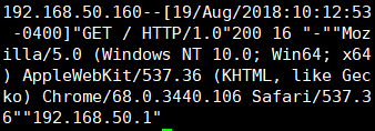 192.168.50.163--[28/Jul/2017:02:12:22 -0400]"GET / HTTP/1.1"200 18 "-""Mozilla/5.0