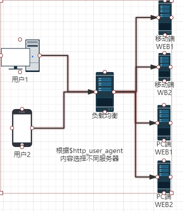 在第7层负载均衡架构下,通过获取用户请求中的设备信息(利用$http_user_agent获取),根据这些信息转给后端合适的服务器处理,