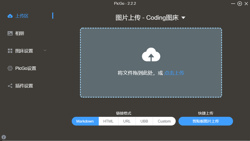 PicGo设置成这样也是有道理的,因为这样的话还是需要拖动文件到picgo,然后复制粘贴链接,但是用来markdown写作其实还有更简单的操作。