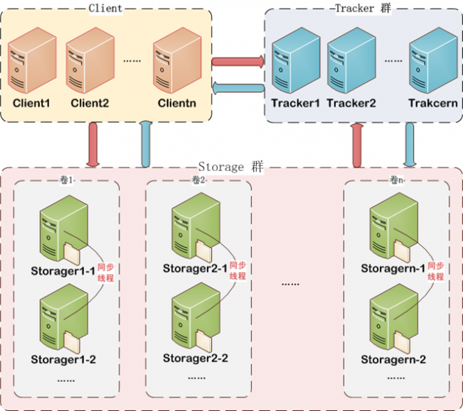 FastDFS服务端有三个角色:跟踪服务器(tracker server)、存储服务器(storage server)和客户端(client)。