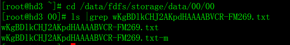 [root@hd3 ~]#ln -s /data/fdfs/storage/data/ /data/fdfs/storage/data/group1/M00