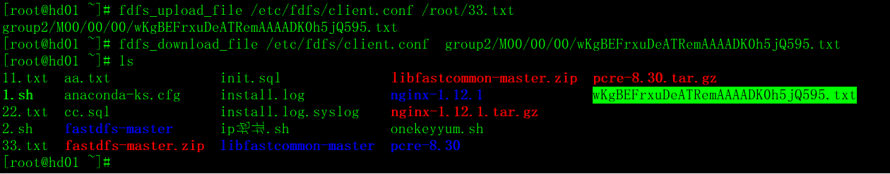[root@hd1 ~]# fdfs_upload_file /etc/fdfs/client.conf test.txt