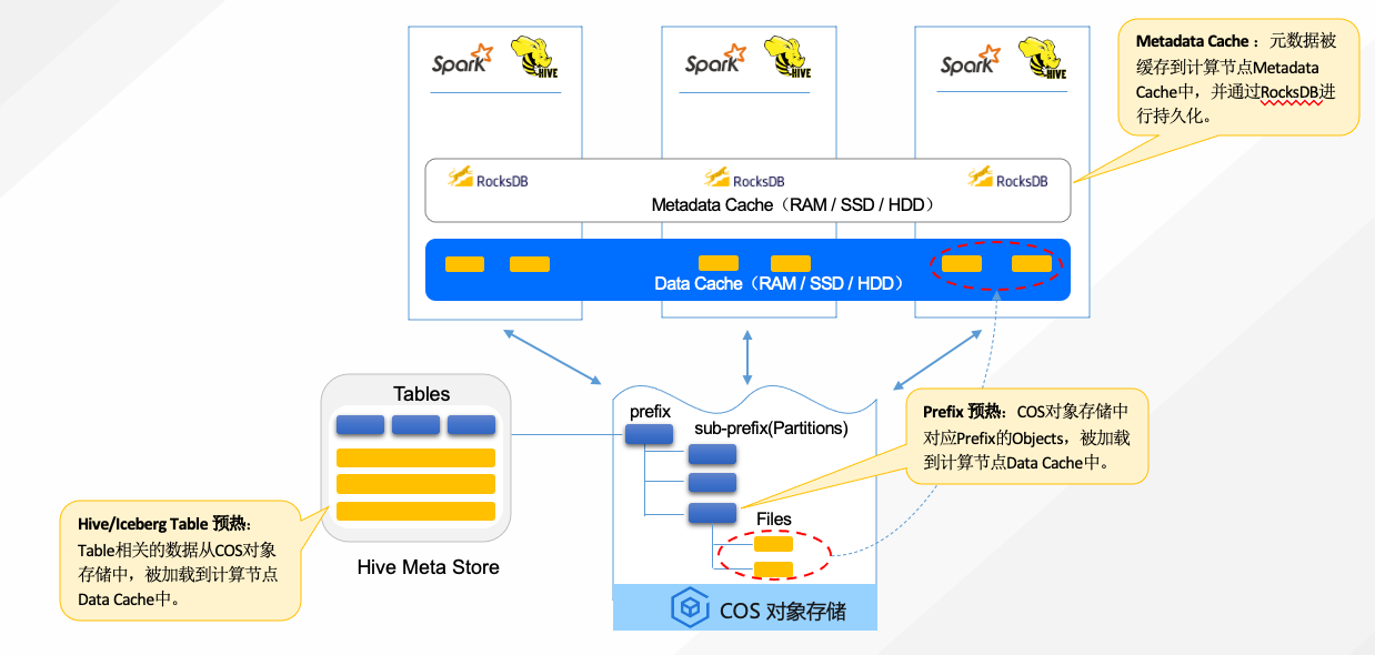 - 基于 Namespace 粒度的读写缓存策略以及 Hive Table 级别预热;