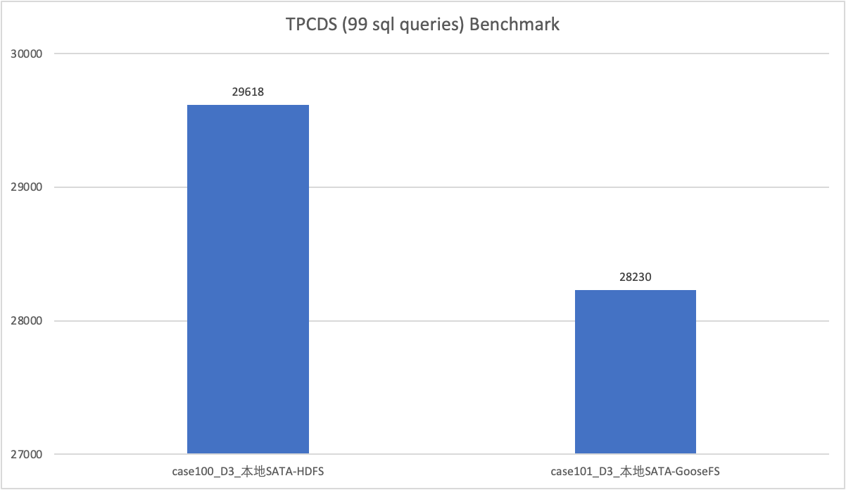 case100_D3_本地SATA_HDFS 和 case100_D3_本地SATA_GOOSEFS 的 TPCDS 测试结果: