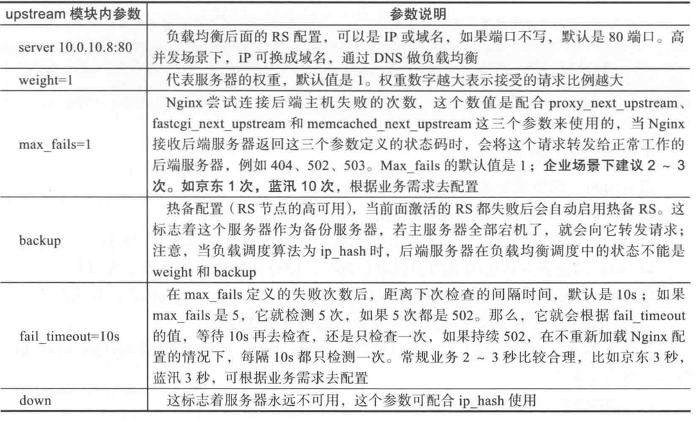 特别注意,如果nginx代理的是cache服务,可能需要使用hash算法,此时若宕机,可通过设置down参数确保客户端确保客户端用户按照当前的hash算法访问,这一点很重要。