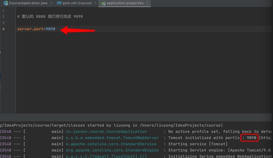 端口我们也可以自己指定,放到应用配置文件 application.properties 中即可。