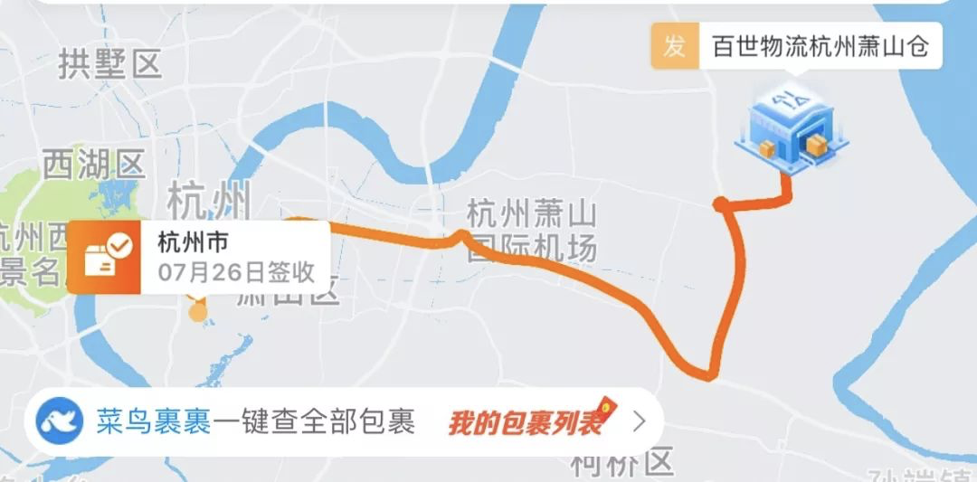 比如我在杭州市西湖区,下单购买了一箱零食,没过多久就可以看到猫超已经发货了,发货地址是杭州的萧山仓,从杭州的一个区运输到另外一个区,24小时怎么也到了。