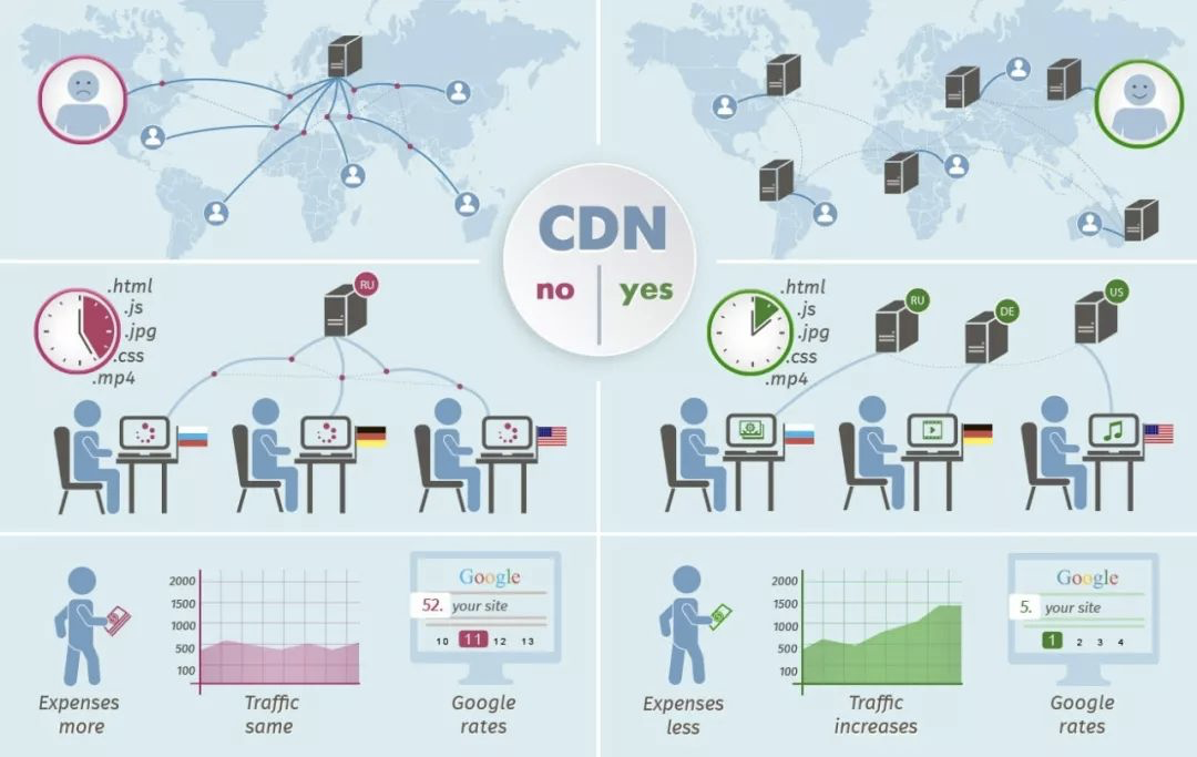 CDN技术消除了不同运营商之间互联的瓶颈造成的影响,实现了跨运营商的网络加速,保证不同网络中的用户都能得到良好的访问质量