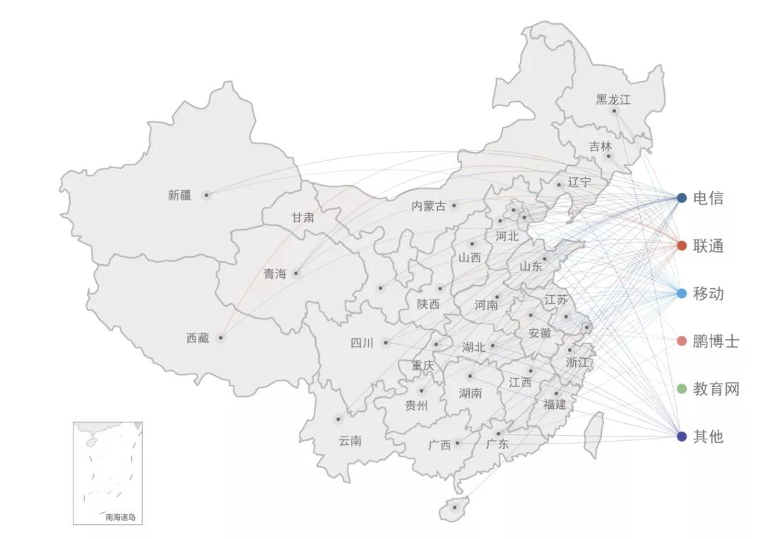 图:阿里云在中国大陆的CDN节点的分布情况