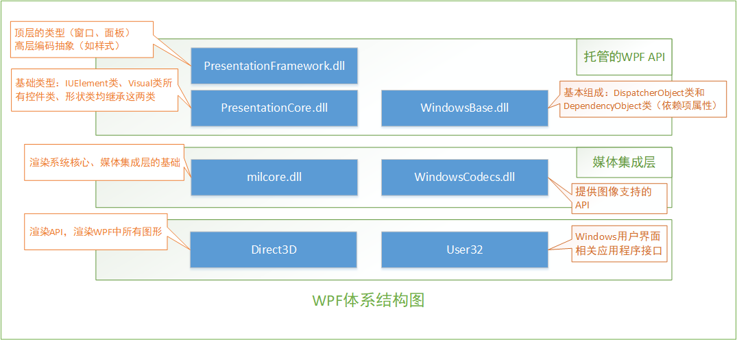 WinForm底层使用的是GDI+,而WPF 底层使用的是DirectX,就是通常用来开发游戏的那个DirectX。
