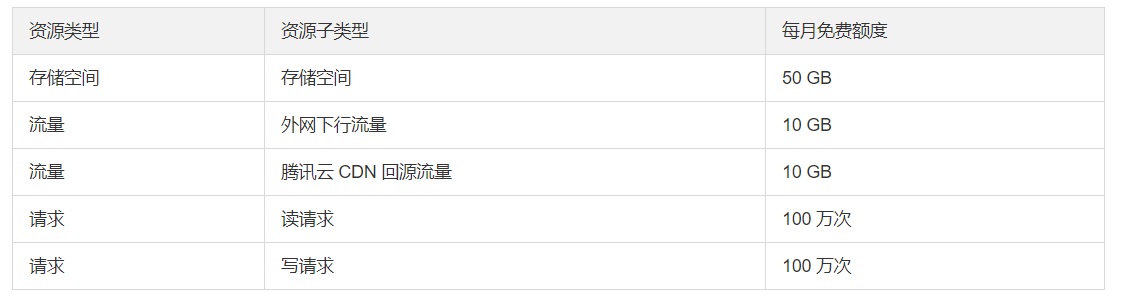 PS: 并非永久免费,而是 6 个月限度。即创建对象存储桶的 6 个月内,每月提供免费额度。