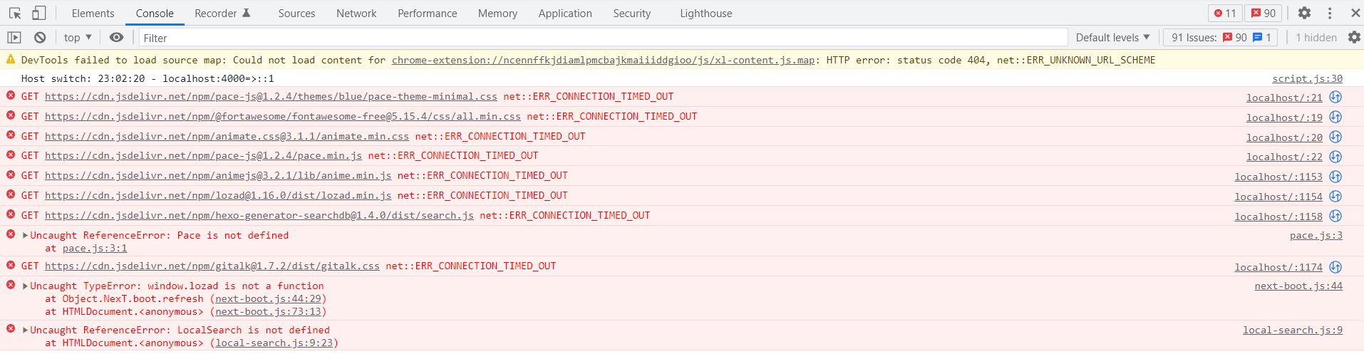 最近访问自己博客的时候,发现首页访问很慢,甚至打不开,有些浏览器可以,打开控制台,发现访问的前端资源很多都是超时的。