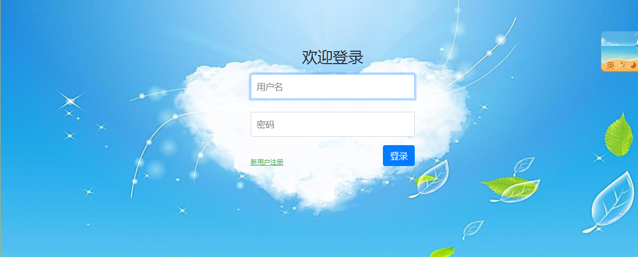 然而,上面的登录页面在宽度上依然不太合适,背景也单调,所以一般我们会写一些CSS代码,同时使用背景图片。