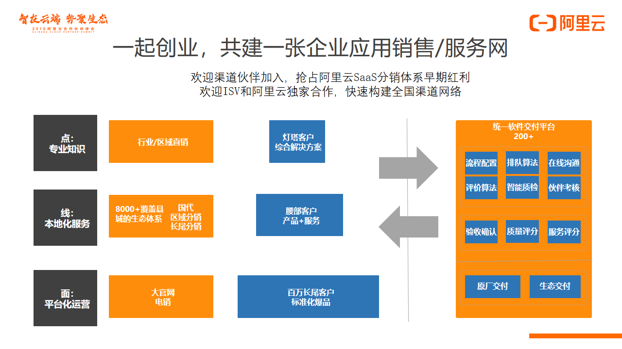 这个分销和交付体系的构建,离不开各个伙伴的加入,如果在座的各位伙伴是从事传统企业应用软件分销,有自己销售的团队,而且手头有一些成功的客户经验,我们非常欢迎大家加入。