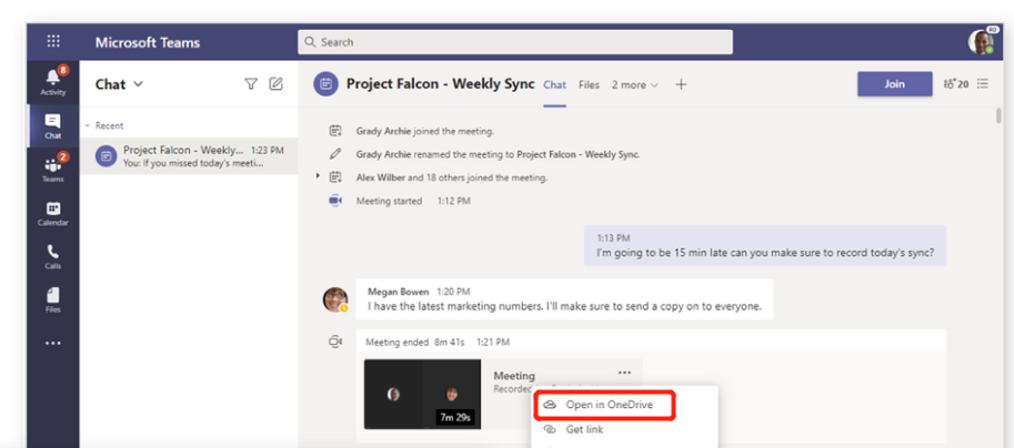 应很多大客户的合规等需求,Meeting Recording将存储在OneDrive或者SharePoint中,这样就会像其他办公文件一样,可以随时随地与组织内部和外部用户进行共享,同时企业级客户还可以对其进行深入分析,比如通过API对会议记录进行进一步解析等等。