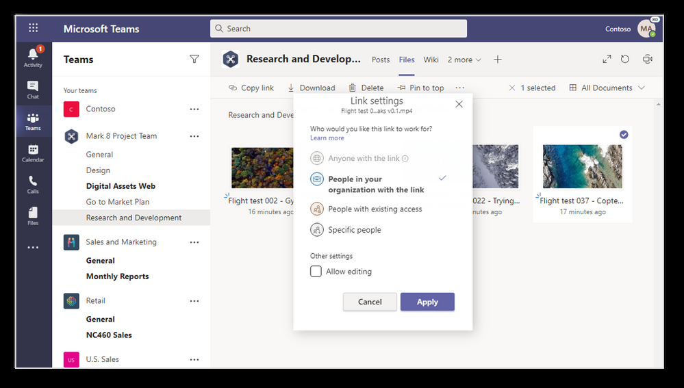 像其他存储在Microsoft 365 文档一样,共享视频: