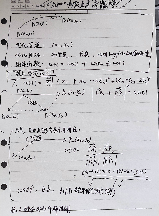 之前一直不太明白如何在轨迹生成时考虑曲率约束,今天在b站看了一个关于apollo的离散点平滑的视频,这里记录一下视频内容和自己的一些总结。